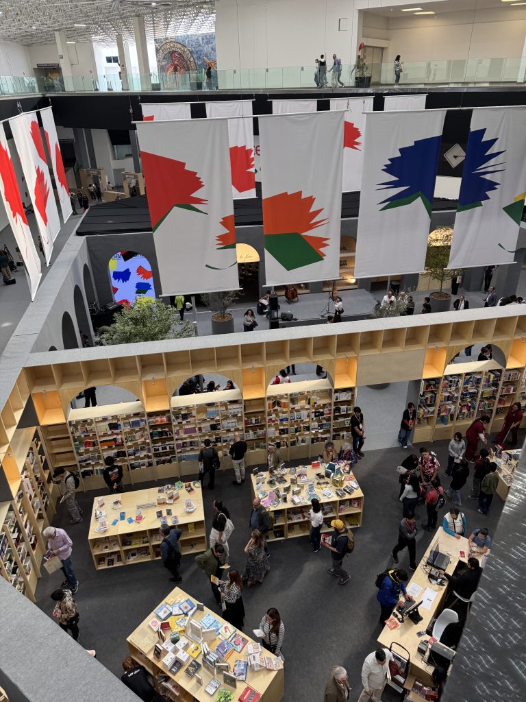 El pabellón barcelonés “Espacio Publicado” recrea una plaza con librería de más de 10 000 títulos y un auditorio para actividades, además de presentaciones de arte, música y propuestas novedosas.